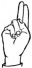 На ћирилици написано ЈЕЛКА ДАНГУБИЋ састоји се из 13 слова [?]. Исписано ћириличном једноручном азбуком за глувонеме: